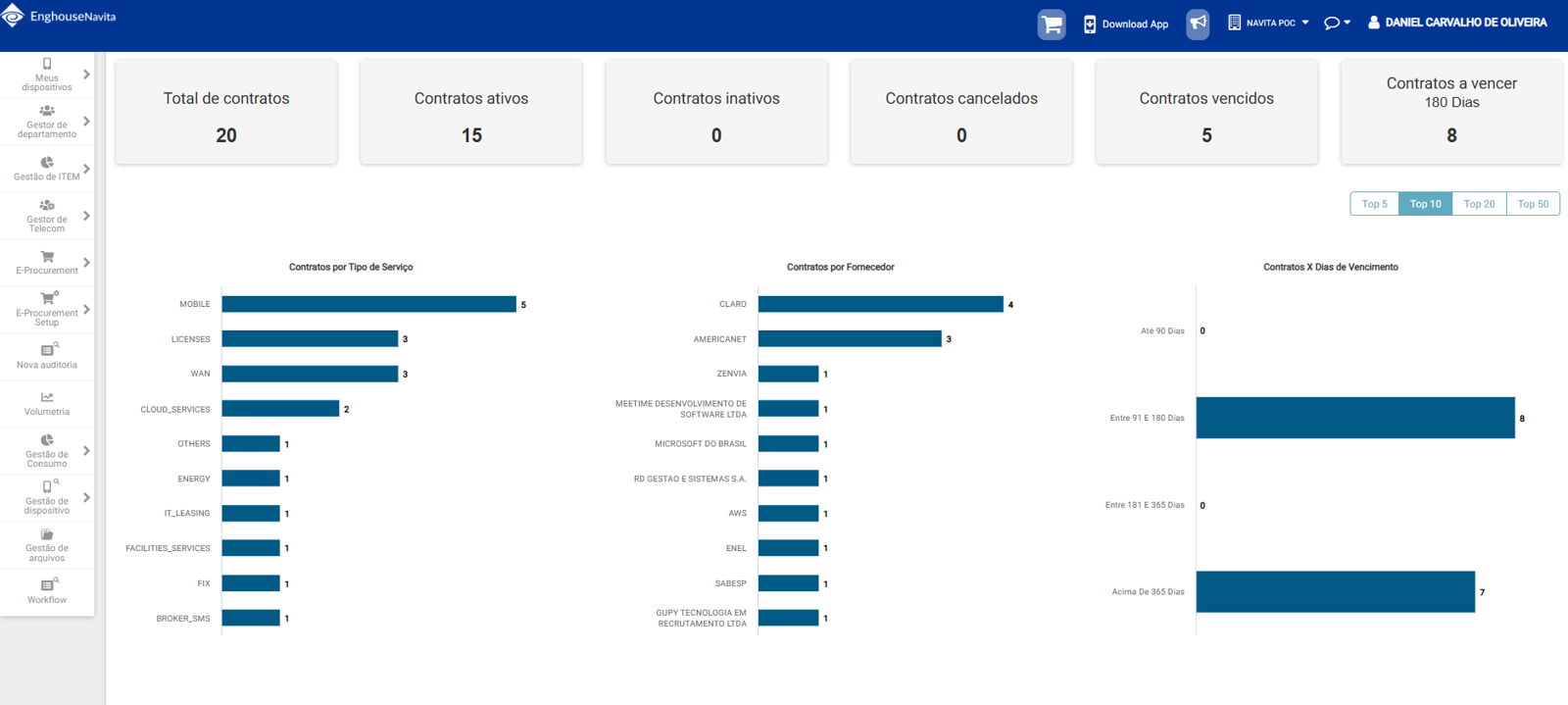 A solução te traz em uma dashboard, dinâmica e de fácil compreensão dados atualizados sobre quando será a data de renovação de seus contratos.